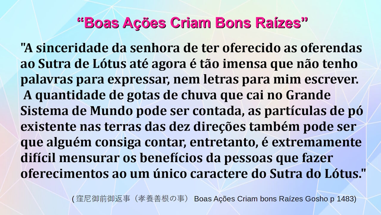 (As Escrituras de Nitiren Daishonin, vol. 1, pág. 250.)