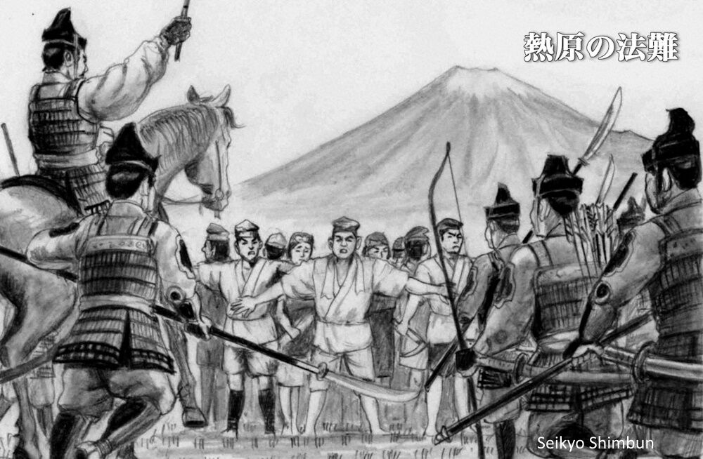 Em 10 de setembro de 1271, Daishonin foi interrogado por Hei-no-saemon e, na noite do mesmo dia, seu eremitério em Kamakura foi atacado por um grande número de soldados lideradas por Hei-no-saemon.