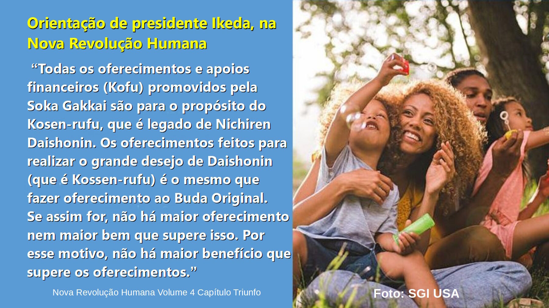 Enquanto tiver pessoas (comuns) que abraçam o Gohonzon e empenham sem poupar sua vida (esforço) para difundir a Lei (o Nam-myoho-rengue-kyo), a correnteza do Kossen-rufu jamais será interrompido.