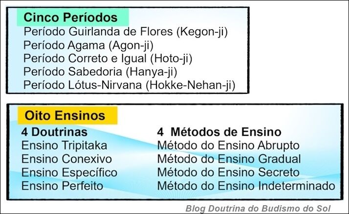 Esse método divide todos os sutras em: Cinco Períodos e Oito Ensinos.