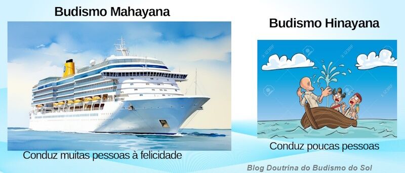 Outro ponto: O Mahayana significa “grande veículo” em sânscrito e “Hinayana” significa pequeno veículo .
