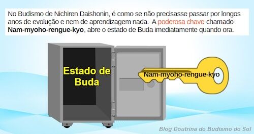 Em comparação, o Budismo de Semeadura de Nichiren Daishonin, possibilita as pessoas a atingirem o estado de Buda na presente forma e imediatamente nesta vida. Prsente forma significa que, nos ensinamentos pré-Sutra de Lótus eram ensinados que os seres dos Dois Veículos (estados de Erudição e Absolução), mulheres e pessoas mals não podeiam atingir a iluminação, tinham que fazer prática de incontáveis kalpas para nascer em homem e boa pessoa, para então depois prosseguir no caminho da bodisatva e atingir a iluminação.